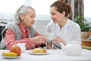 Provie support and assistance during meal times. This can include; breakfast, lunch, dinner, snacks and fluid intakes; according to individual needs and wants.